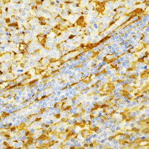 IHC检测Galectin 3蛋白(货号 GB15246). 样品: 人扁桃体, 4%多聚甲醛 (货号G1101) 固定12-24小时. 抗原修复: 柠檬酸抗原修复液(干粉, pH 6.0) (G1201), 高压锅均匀喷气计时2分钟. —抗: 1: 1000稀释, 4℃ 孵育过夜. 二抗: HRP标记山羊抗小鼠IgG (H+L) (货号GB23301), 1: 200稀释, 室温孵育1小时. |