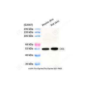 | WB检测Cytokeratin 5/6蛋白(货号 GB151246) . 样品: 经RIPA裂解液(货号G2002)处理的蛋白质. 封闭: 3%脱脂牛奶(货号GC310001)溶于TBST溶液, 室温孵育1小时. —抗: 1: 1000稀释, 4℃ 孵育过夜. 二抗: HRP标记山羊抗小鼠IgG (H+L) (货号GB23301), 1: 5000稀释, 室温孵育1小时. |
