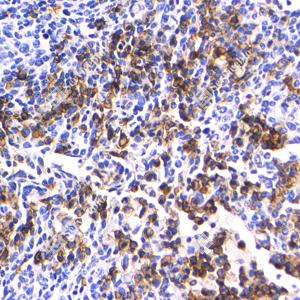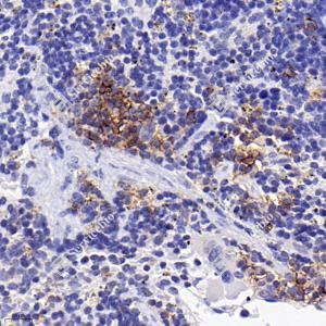 | IHC检测Syndecan-1/CD138蛋白(货号 GB115052). 样品: 小鼠抗原刺激模型脾脏, 4%多聚甲醛 (货号G1101) 固定12-24小时. 抗原修复: 柠檬酸抗原修复液(干粉, pH 6.0) (G1201), 98℃, 20分钟. —抗: 1: 300稀释, 4℃ 孵育过夜. 二抗: HRP标记山羊抗兔IgG (H+L) (货号GB23303), 1: 200稀释, 室温孵育1小时. |