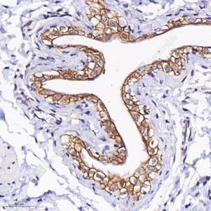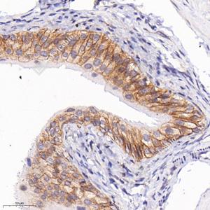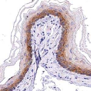 | IHC检测Syndecan-1/CD138蛋白(货号 GB115052). 样品: 小鼠膀胱, 4%多聚甲醛 (货号G1101) 固定12-24小时. 抗原修复: 柠檬酸抗原修复液(干粉, pH 6.0) (G1201), 98℃, 20分钟. —抗: 1: 300稀释, 4℃ 孵育过夜. 二抗: HRP标记山羊抗兔IgG (H+L) (货号GB23303), 1: 200稀释, 室温孵育1小时. |