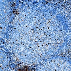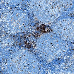 | IHC检测Lysozyme蛋白(货号 GB15345). 样品: 人扁桃体, 4%多聚甲醛 (货号G1101) 固定12-24小时. 抗原修复: 柠檬酸抗原修复液 (干粉, pH 6.0) (G1201), 高压锅均匀喷气计时2分钟. —抗: 1: 100稀释, 4℃ 孵育过夜. 二抗: S-vision免疫组化多聚二抗(山羊抗兔),即用型 (货号G1302), 室温孵育20分钟. |