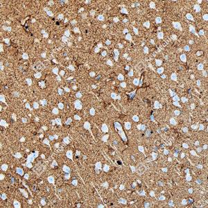 IHC检测Glutamine Synthetase蛋白(货号 GB151177). 样品: 大鼠脑, 4%多聚甲醛 (货号G1101) 固定12-24小时. 抗原修复: Tris-EDTA抗原修复液(pH 9.0) (G1203), 98℃, 20分钟. —抗: 1: 5000稀释, 4℃ 孵育过夜. 二抗: S-vision免疫组化多聚二抗(山羊抗小鼠), 即用型(货号G1301), 室温孵育20分钟. |