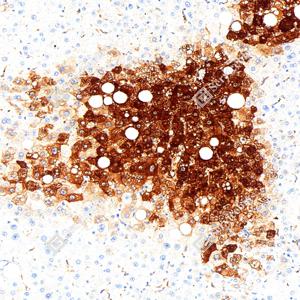 IHC检测Glutamine Synthetase蛋白(货号 GB151217). 样品: 人肝, 4%多聚甲醛 (货号G1101) 固定12-24小时. 抗原修复: 柠檬酸抗原修复液(干粉, pH 6.0) (G1201), 高压锅均匀喷气计时2分钟. —抗: 1: 1500稀释, 4℃ 孵育过夜. 二抗: S-vision免疫组化多聚二抗(山羊抗兔),即用型 (货号G1302), 室温孵育20分钟. |