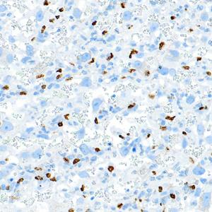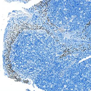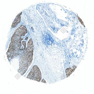 IHC检测 p63蛋白(货号 GB150065). 样品: 人扁桃体, 4%多聚甲醛 (货号G1101) 固定12-24小时. 抗原修复: 柠檬酸抗原修复液 (干粉, pH 6.0) (G1201), 高压锅均匀喷气计时2分钟. —抗: 1: 5000稀释, 4℃ 孵育过夜. 二抗: S-vision免疫组化多聚二抗(山羊抗兔),即用型 (货号G1302), 室温孵育20分钟. |