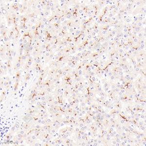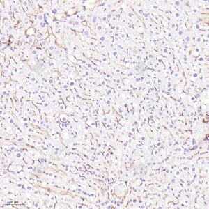 IHC检测DPP4/CD26蛋白(货号 GB114937). 样品: 人肝, 4%多聚甲醛 (货号G1101) 固定12-24小时. 抗原修复: 柠檬酸抗原修复液(干粉, pH 6.0) (G1201), 98℃, 20分钟. —抗: 1: 1000稀释, 4℃ 孵育过夜. 二抗: HRP标记山羊抗兔IgG (H+L) (货号GB23303), 1: 200稀释, 室温孵育1小时. |