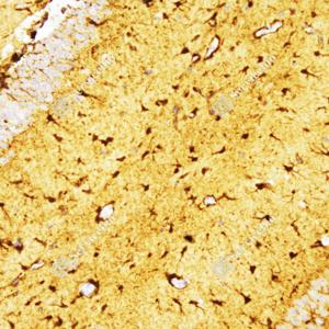 IHC检测BLBP蛋白(货号 GB151213). 样品: 大鼠脑, 4%多聚甲醛 (货号G1101) 固定12-24小时. 抗原修复: Tris-EDTA抗原修复液(pH 9.0) (G1203), 98℃, 20分钟. —抗: 1: 8000稀释, 4℃ 孵育过夜. 二抗: HRP标记山羊抗小鼠IgG (H+L) (货号GB23301), 1: 200稀释, 室温孵育1小时. |
