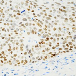 TP63, also named KET, P63, P73H, P73L and TP73L, belongs to the p53 family. It is a homologue of the tumor suppressor p53 and p73 genes. It is involved in malignancy acquisition and maintenance of cells. Unlike p53, the p63 gene encodes multiple isotypes with remarkably divergent abilities to transactivate p53 reporter genes and induce apoptosis. TP63 acts as a sequence specific DNA binding transcriptional activator or repressor. TP63 has 12 isoforms with MW 40kd(P40), 50kd(P60),63kd(P63) and 73kd(P73L). It is Nuclear stain.