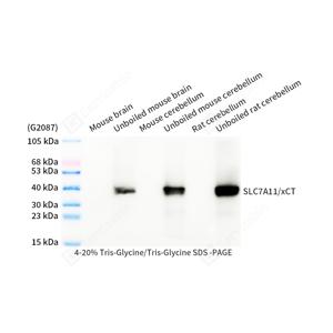 | WB检测SLC7A11/xCT蛋白(货号 GB155276) . 样品: 经RIPA裂解液(货号G2002)处理的蛋白质. 封闭: 3%脱脂牛奶(货号GC310001)溶于TBST溶液, 室温孵育1小时. —抗: 1: 500稀释, 4℃ 孵育过夜. 二抗: HRP标记山羊抗兔IgG (H+L) (货号GB23303), 1: 5000稀释, 室温孵育1小时. |
