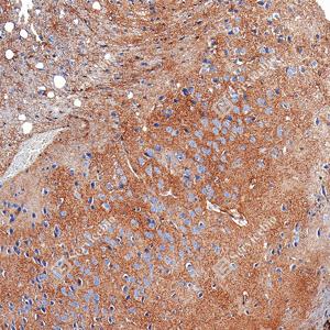 | IHC检测SLC7A11/xCT蛋白(货号 GB155276). 样品: 大鼠脑, 4%多聚甲醛 (货号G1101) 固定12-24小时. 抗原修复: 抗原修复仪(货号 ARI-4), Tris-EDTA抗原修复液(pH 9.0) (货号G1203), 水浴100℃, 25分钟. —抗: 1: 1000稀释, 4℃ 孵育过夜. 二抗: S-vision免疫组化多聚二抗(山羊抗兔),即用型 (货号G1302), 室温孵育20分钟. |