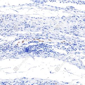 | IHC检测SOX10蛋白(货号 GB15782). 样品: 人结肠, 4%多聚甲醛 (货号G1101) 固定12-24小时. 抗原修复: 抗原修复仪(货号 ARI-4),Tris-EDTA抗原修复液(pH 9.0) (货号G1203), 水浴100℃, 25分钟. —抗: 1: 2000稀释, 4℃ 孵育过夜. 二抗: S-vision免疫组化多聚二抗(山羊抗兔),即用型 (货号G1302), 室温孵育20分钟. |
