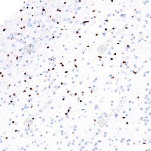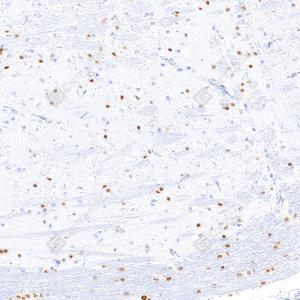 | IHC检测SOX10蛋白(货号 GB15782). 样品: 大鼠脑, 4%多聚甲醛 (货号G1101) 固定12-24小时. 抗原修复: 抗原修复仪(货号 ARI-4),Tris-EDTA抗原修复液(pH 9.0) (货号G1203), 水浴100℃, 25分钟. —抗: 1: 2000稀释, 4℃ 孵育过夜. 二抗: S-vision免疫组化多聚二抗(山羊抗兔),即用型 (货号G1302), 室温孵育20分钟. |