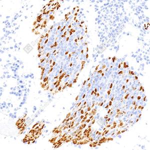 | IHC检测SOX10蛋白(货号 GB15782). 样品: 人结肠癌, 4%多聚甲醛 (货号G1101) 固定12-24小时. 抗原修复: 抗原修复仪(货号 ARI-4),Tris-EDTA抗原修复液(pH 9.0) (货号G1203), 水浴100℃, 25分钟. —抗: 1: 2000稀释, 4℃ 孵育过夜. 二抗: S-vision免疫组化多聚二抗(山羊抗兔),即用型 (货号G1302), 室温孵育20分钟. |