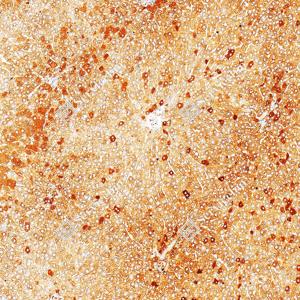 | IHC检测Transferrin蛋白(货号 GB150148). 样品: 大鼠肝, 4%多聚甲醛 (货号G1101) 固定12-24小时. 抗原修复: 抗原修复仪 (货号 ARI-4),柠檬酸抗原修复液(干粉, pH 60) (G1201), 高压锅均匀喷气计时2分钟. —抗: 1: 1000稀释, 4℃ 孵育过夜. 二抗: S-vision免疫组化多聚二抗(山羊抗小鼠), 即用型(货号G1301), 室温孵育20分钟. |