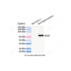 | WB检测Acetylcholinesterase蛋白(货号 GB150188). 样品: 经RIPA裂解液(货号G2002)处理的蛋白质. 封闭: 3%脱脂牛奶(货号GC310001)溶于TBST溶液, 室温孵育1小时. —抗: 1: 500稀释, 4℃ 孵育过夜. 二抗: HRP标记山羊抗兔IgG (H+L) (货号GB23303), 1: 5000稀释, 室温孵育1小时. |