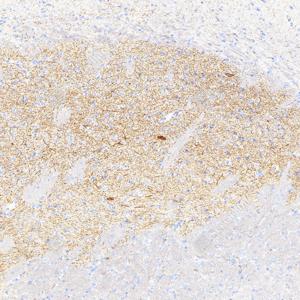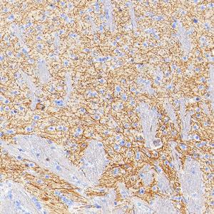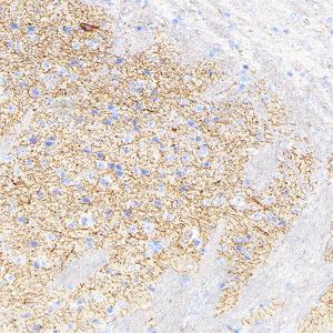 | IHC检测Acetylcholinesterase蛋白(货号 GB150188). 样品: 大鼠脑, 4%多聚甲醛 (货号G1101) 固定12-24小时. 抗原修复: 抗原修复仪(货号 ARI-4),Tris-EDTA抗原修复液(pH 9.0) (货号G1203), 水浴100℃, 25分钟. —抗: 1: 2400稀释, 4℃ 孵育过夜. 二抗: S-vision免疫组化多聚二抗(山羊抗兔),即用型 (货号G1302), 室温孵育20分钟. |