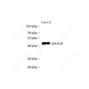AMACR(Alpha-methylacyl-CoA racemase) belongs to the CaiB/BaiF CoA-transferase family. It is a mitochondrial and peroxisomal enzyme that catalyzes the conversion of 2R stereoisomers of phytanic and pristanic acid to their S counterparts. AMACR has previously been shown to be a highly sensitive marker for colorectal and clinically localized prostate cancer (PCa). However, AMACR expression is down-regulated at the transcript and protein level in hormone-refractory metastatic PCa, suggesting a hormone-dependent expression of AMACR. Defects in AMACR are the cause of alpha-methylacyl-CoA racemase deficiency (AMACRD) and congenital bile acid synthesis defect type 4 (CBAS4).