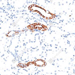 | IHC检测Aquaporin 2蛋白(货号 GB155729). 样品: 人肾, 4%多聚甲醛 (货号G1101) 固定12-24小时. 抗原修复: 抗原修复仪(货号 ARI-4), Tris-EDTA抗原修复液(pH 9.0) (货号G1203), 水浴98℃, 20分钟. —抗: 1: 1000稀释, 4℃ 孵育过夜. 二抗: S-vision免疫组化多聚二抗(山羊抗兔),即用型 (货号G1302), 室温孵育20分钟. |