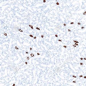 | IHC检测Aquaporin 2蛋白(货号 GB155729). 样品: 小鼠肾, 4%多聚甲醛 (货号G1101) 固定12-24小时. 抗原修复: 抗原修复仪(货号 ARI-4), Tris-EDTA抗原修复液(pH 9.0) (货号G1203), 水浴98℃, 20分钟. —抗: 1: 1000稀释, 4℃ 孵育过夜. 二抗: S-vision免疫组化多聚二抗(山羊抗兔),即用型 (货号G1302), 室温孵育20分钟. |