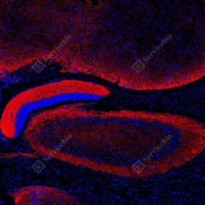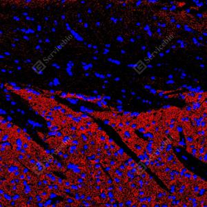 | IF检测Hexokinase 1蛋白(货号 GB150134)(红色). 样品: 大鼠脑, 4%多聚甲醛 (货号G1101) 固定12-24小时. 抗原修复: 抗原修复仪 (货号 ARI-4),Tris-EDTA抗原修复液(pH 9.0) (货号G1203), 水浴90℃, 30分钟. 封闭: 3% BSA(货号GC305010)的PBS溶液, 室温孵育30分钟. —抗: 1: 500稀释, 4℃ 孵育过夜. 二抗: Cy3标记山羊抗兔IgG (H+L) (货号GB21303), 1: 300稀释, 室温孵育1小时. |