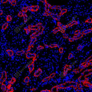 | IF检测Hexokinase 1蛋白(货号 GB150134)(红色). 样品: 人肾, 4%多聚甲醛 (货号G1101) 固定12-24小时. 抗原修复: 抗原修复仪 (货号 ARI-4),Tris-EDTA抗原修复液(pH 9.0) (货号G1203), 水浴90℃, 30分钟. 封闭: 3% BSA(货号GC305010)的PBS溶液, 室温孵育30分钟. —抗: 1: 500稀释, 4℃ 孵育过夜. 二抗: Cy3标记山羊抗兔IgG (H+L) (货号GB21303), 1: 300稀释, 室温孵育1小时. |