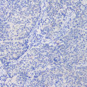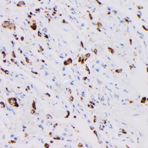 IHC检测NAPSIN-A蛋白(货号 GB121012). 样品: 人肺鳞状细胞癌, 4%多聚甲醛 (货号G1101) 固定12-24小时. 抗原修复: 柠檬酸抗原修复液(干粉, pH 6.0) (G1201), 高压锅均匀喷气计时2分钟. —抗: 1: 1000稀释, 4℃ 孵育过夜. 二抗: HRP标记山羊抗小鼠IgG (H+L) (货号GB23301), 1: 200稀释, 室温孵育1小时. |