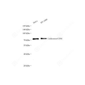 WB检测Caldesmon/CDM蛋白(货号 GB15959). 样品: 经RIPA裂解液(货号G2002)处理的蛋白质. 封闭: 3%脱脂牛奶(货号GC310001)溶于TBST溶液, 室温孵育1小时. —抗: 1: 500稀释, 4℃ 孵育过夜. 二抗: HRP标记山羊抗小鼠IgG (H+L) (货号GB23301), 1: 5000稀释, 室温孵育1小时. |
