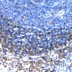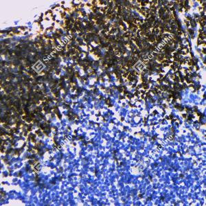 | IHC检测CD22蛋白(货号 GB115654). 样品: 大鼠淋巴结, 4%多聚甲醛 (货号G1101) 固定12-24小时. 抗原修复: 柠檬酸抗原修复液(干粉, pH 6.0) (G1201), 98℃, 20分钟. —抗: 1: 500稀释, 4℃ 孵育过夜. 二抗: HRP标记山羊抗兔IgG (H+L) (货号GB23303), 1: 200稀释, 室温孵育1小时. |
