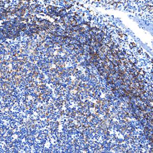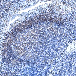 | IHC检测CD22蛋白(货号 GB155558). 样品: 人扁桃体, 4%多聚甲醛 (货号G1101) 固定12-24小时. 抗原修复: Tris-EDTA抗原修复液(pH 9.0) (G1203), 100℃, 25分钟. —抗: 1: 2000稀释, 4℃ 孵育过夜. 二抗: S-vision免疫组化多聚二抗(山羊抗兔),即用型 (货号G1302), 室温孵育20分钟. |