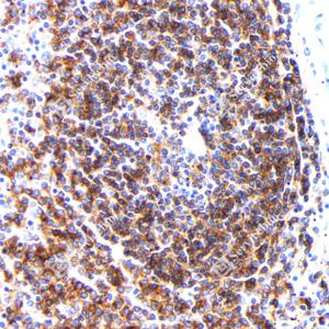 | IHC检测CD22蛋白(货号 GB115558). 样品: 人脾, 4%多聚甲醛 (货号G1101) 固定12-24小时. 抗原修复: 柠檬酸抗原修复液(干粉, pH 6.0) (G1201), 98℃, 20分钟. —抗: 1: 500稀释, 4℃ 孵育过夜. 二抗: HRP标记山羊抗兔IgG (H+L) (货号GB23303), 1: 200稀释, 室温孵育1小时. |