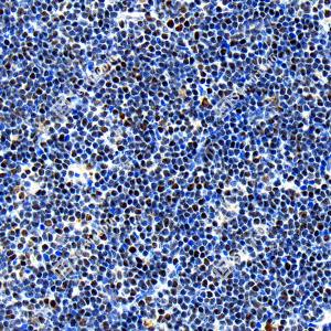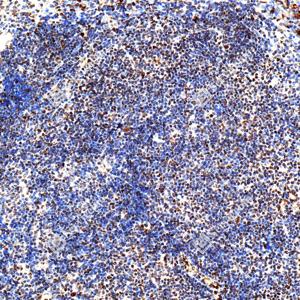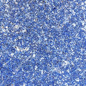 IHC检测PMS2蛋白(货号 GB150071). 样品: 小鼠淋巴结, 4%多聚甲醛 (货号G1101) 固定12-24小时. 抗原修复: Tris-EDTA抗原修复液(pH 9.0) (G1203), 98℃, 20分钟. —抗: 1: 1000稀释, 4℃ 孵育过夜. 二抗: S-vision免疫组化多聚二抗(山羊抗小鼠), 即用型(货号G1301), 室温孵育20分钟. |