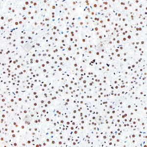 IHC检测PMS2蛋白(货号 GB150011). 样品: 小鼠肝, 4%多聚甲醛 (货号G1101) 固定12-24小时. 抗原修复: Tris-EDTA抗原修复液(pH 9.0) (G1203), 98℃, 20分钟. —抗: 1: 500稀释, 4℃ 孵育过夜. 二抗: S-vision免疫组化多聚二抗(山羊抗兔),即用型 (货号G1302), 室温孵育20分钟. |