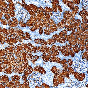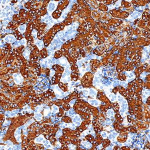 | IHC检测AQP1蛋白(货号 GB150114). 样品: 人肾, 4%多聚甲醛 (货号G1101) 固定12-24小时. 抗原修复: Tris-EDTA抗原修复液(pH 9.0) (G1203), 100℃, 25分钟. —抗: 1: 1000稀释, 4℃ 孵育过夜. 二抗: S-vision免疫组化多聚二抗(山羊抗兔),即用型 (货号G1302), 室温孵育20分钟. |