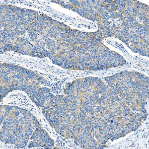 | IHC检测FIS1蛋白(货号 GB150136). 样品: 人食管癌, 4%多聚甲醛 (货号G1101) 固定12-24小时. 抗原修复: 抗原修复仪 (货号 ARI-4),Tris-EDTA抗原修复液(pH 9.0) (货号G1203), 水浴100℃, 25分钟. —抗: 1: 1000稀释, 4℃ 孵育过夜. 二抗: S-vision免疫组化多聚二抗(山羊抗兔),即用型 (货号G1302), 室温孵育20分钟. |