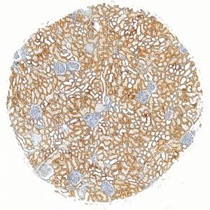 | IHC检测FIS1蛋白(货号 GB150136). 样品: 人肾, 4%多聚甲醛 (货号G1101) 固定12-24小时. 抗原修复: 抗原修复仪 (货号 ARI-4),Tris-EDTA抗原修复液(pH 9.0) (货号G1203), 水浴100℃, 25分钟. —抗: 1: 1000稀释, 4℃ 孵育过夜. 二抗: S-vision免疫组化多聚二抗(山羊抗兔),即用型 (货号G1302), 室温孵育20分钟. |