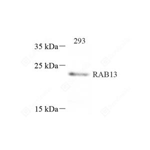 WB检测RAB13蛋白(货号 GB115449). 样品: 经RIPA裂解液(货号G2002)处理的蛋白质. 封闭: 封闭: 3%脱脂牛奶(货号GC310001)溶于TBST溶液, 室温孵育1小时. —抗: 1: 1000稀释, 4℃ 孵育过夜. 二抗: HRP标记山羊抗兔IgG (H+L) (货号GB23303), 1: 5000稀释, 室温孵育1小时. |