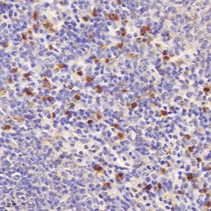 | IHC检测RAB8B蛋白(货号 GB114695). 样品: 小鼠脾, 4%多聚甲醛 (货号G1101) 固定12-24小时. 抗原修复: 柠檬酸抗原修复液(干粉, pH 6.0) (G1201), 98℃, 20分钟. —抗: 1: 1000稀释, 4℃ 孵育过夜. 二抗: HRP标记山羊抗兔IgG (H+L) (货号GB23303), 1: 200稀释, 室温孵育1小时. |