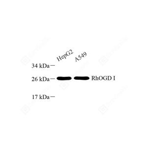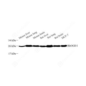 WB检测RhoGDI蛋白(货号 GB11726). 样品: 经RIPA裂解液(货号G2002)处理的蛋白质. 封闭: 封闭: 3%脱脂牛奶(货号GC310001)溶于TBST溶液, 室温孵育1小时. —抗: 1: 1000稀释, 4℃ 孵育过夜. 二抗: HRP标记山羊抗兔IgG (H+L) (货号GB23303), 1: 5000稀释, 室温孵育1小时. |