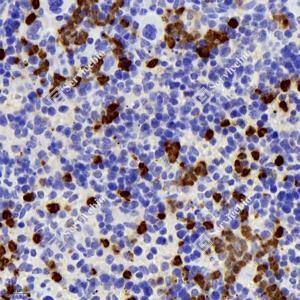 IHC检测MRP8蛋白(货号 GB11421). 样品: 小鼠脾, 4%多聚甲醛 (货号G1101) 固定12-24小时. 抗原修复: 柠檬酸抗原修复液(干粉, pH 6.0) (G1201), 98℃, 20分钟. —抗: 1: 1500稀释, 4℃ 孵育过夜. 二抗: HRP标记山羊抗兔IgG (H+L) (货号GB23303), 1: 200稀释, 室温孵育1小时. |