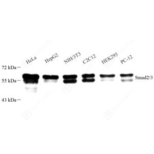 免疫原 | KLH偶联的小鼠Smad2 + Smad3合成肽 |