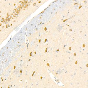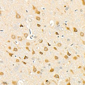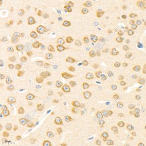 IHC检测GSK3 beta蛋白(货号 GB11835). 样品: 小鼠脑, 4%多聚甲醛 (货号G1101) 固定12-24小时. 抗原修复: 柠檬酸抗原修复液(干粉, pH 6.0) (G1201), 98℃, 20分钟. —抗: 1: 1500稀释, 4℃ 孵育过夜. 二抗: HRP标记山羊抗兔IgG (H+L) (货号GB23303), 1: 200稀释, 室温孵育1小时. |