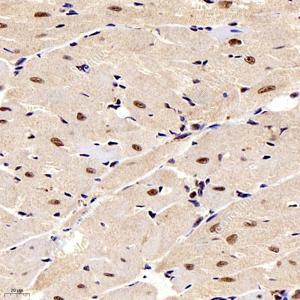 IHC检测PKC alpha蛋白(货号 GB11649). 样品: 小鼠心, 4%多聚甲醛 (货号G1101) 固定12-24小时. 抗原修复: Tris-EDTA抗原修复液(pH 9.0) (G1203), 98℃, 20分钟. —抗: 1: 2000稀释, 4℃ 孵育过夜. 二抗: HRP标记山羊抗兔IgG (H+L) (货号GB23303), 1: 200稀释, 室温孵育1小时. |