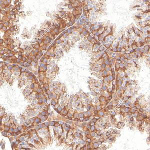 IHC检测PI 3 Kinase p55 gamma蛋白(货号 GB115763). 样品: 小鼠睾丸, 4%多聚甲醛 (货号G1101) 固定12-24小时. 抗原修复: 柠檬酸抗原修复液(干粉, pH 6.0) (G1201), 98℃, 20分钟. —抗: 1: 300稀释, 4℃ 孵育过夜. 二抗: S-vision免疫组化多聚二抗(山羊抗兔),即用型 (货号G1302), 室温孵育20分钟. |