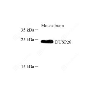 WB检测DUSP26蛋白(货号 GB114557). 样品: 经RIPA裂解液(货号G2002)处理的蛋白质. 封闭: 3%脱脂牛奶(货号GC310001)溶于TBST溶液, 室温孵育1小时. —抗: 1: 500稀释, 4℃ 孵育过夜. 二抗: HRP标记山羊抗兔IgG (H+L) (货号GB23303), 1: 5000稀释, 室温孵育1小时. |
