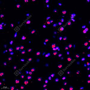IF检测DAG1蛋白(货号 GB11714)(红色). 样品: 大鼠前额叶, 4%多聚甲醛 (货号G1101) 固定12-24小时. 抗原修复: Tris-EDTA抗原修复液(pH 9.0) (G1203), 98℃, 20分钟. 封闭: 3% BSA(货号GC305010)的PBS溶液, 室温孵育30分钟. —抗: 1: 1000稀释, 4℃ 孵育过夜. 二抗: Cy3标记山羊抗兔IgG (H+L) (货号GB21303), 1: 300稀释, 室温孵育1小时. |
