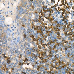 IHC检测GULP蛋白(货号 GB114473). 样品: 人扁桃体, 4%多聚甲醛 (货号G1101) 固定12-24小时. 抗原修复: 柠檬酸抗原修复液(干粉, pH 6.0) (G1201), 98℃, 20分钟. —抗: 1: 800稀释, 4℃ 孵育过夜. 二抗: HRP标记山羊抗兔IgG (H+L) (货号GB23303), 1: 200稀释, 室温孵育1小时. |