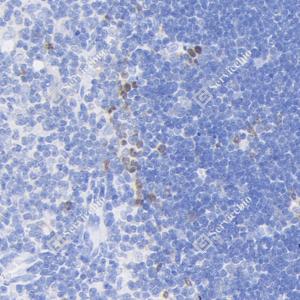 IHC检测IBTK蛋白(货号 GB114533). 样品: 大鼠淋巴结, 4%多聚甲醛 (货号G1101) 固定12-24小时. 抗原修复: 柠檬酸抗原修复液(干粉, pH 6.0) (G1201), 98℃, 20分钟. —抗: 1: 800稀释, 4℃ 孵育过夜. 二抗: HRP标记山羊抗兔IgG (H+L) (货号GB23303), 1: 200稀释, 室温孵育1小时. |
