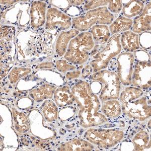 IHC检测PDE1C/PDE1蛋白(货号 GB114930). 样品: 人肾, 4%多聚甲醛 (货号G1101) 固定12-24小时. 抗原修复: Tris-EDTA抗原修复液(pH 9.0) (G1203), 98℃, 20分钟. —抗: 1: 800稀释, 4℃ 孵育过夜. 二抗: HRP标记山羊抗兔IgG (H+L) (货号GB23303), 1: 200稀释, 室温孵育1小时. |