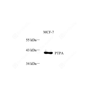 WB检测PPP2R4蛋白(货号 GB113796). 样品: 经RIPA裂解液(货号G2002)处理的蛋白质. 封闭: 封闭: 3%脱脂牛奶(货号GC310001)溶于TBST溶液, 室温孵育1小时. —抗: 1: 1000稀释, 4℃ 孵育过夜. 二抗: HRP标记山羊抗兔IgG (H+L) (货号GB23303), 1: 5000稀释, 室温孵育1小时. |