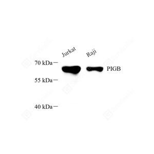 WB检测PIGB蛋白(货号 GB115288). 样品: 经RIPA裂解液(货号G2002)处理的蛋白质. 封闭: 封闭: 3%脱脂牛奶(货号GC310001)溶于TBST溶液, 室温孵育1小时. —抗: 1: 1000稀释, 4℃ 孵育过夜. 二抗: HRP标记山羊抗兔IgG (H+L) (货号GB23303), 1: 5000稀释, 室温孵育1小时. |