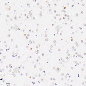 IHC检测PLK5蛋白(货号 GB113372). 样品: 小鼠脑, 4%多聚甲醛 (货号G1101) 固定12-24小时. 抗原修复: Tris-EDTA抗原修复液(pH 9.0) (G1203), 98℃, 20分钟. —抗: 1: 3000稀释, 4℃ 孵育过夜. 二抗: HRP标记山羊抗兔IgG (H+L) (货号GB23303), 1: 200稀释, 室温孵育1小时. |